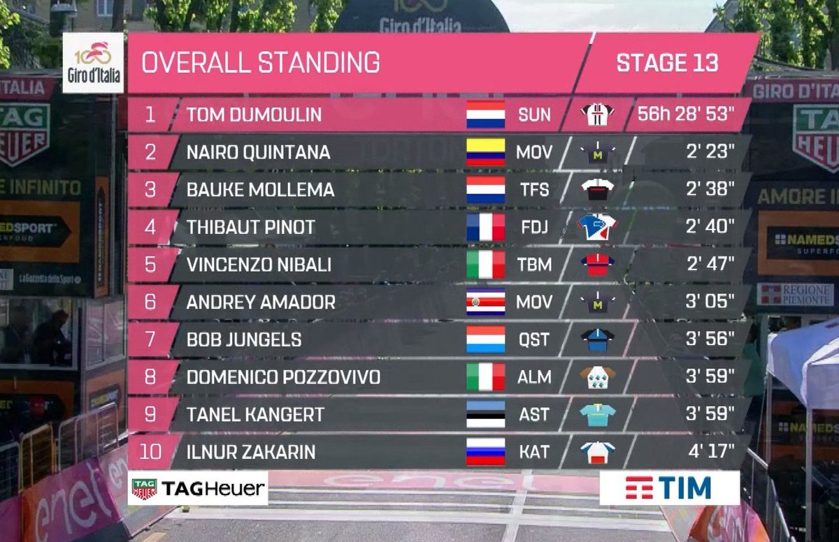 El tico del Movistar Team se encuentra a 3:05 del líder, el holandés Tom Dumoulin, quien acumula un tiempo de 56:28:53.