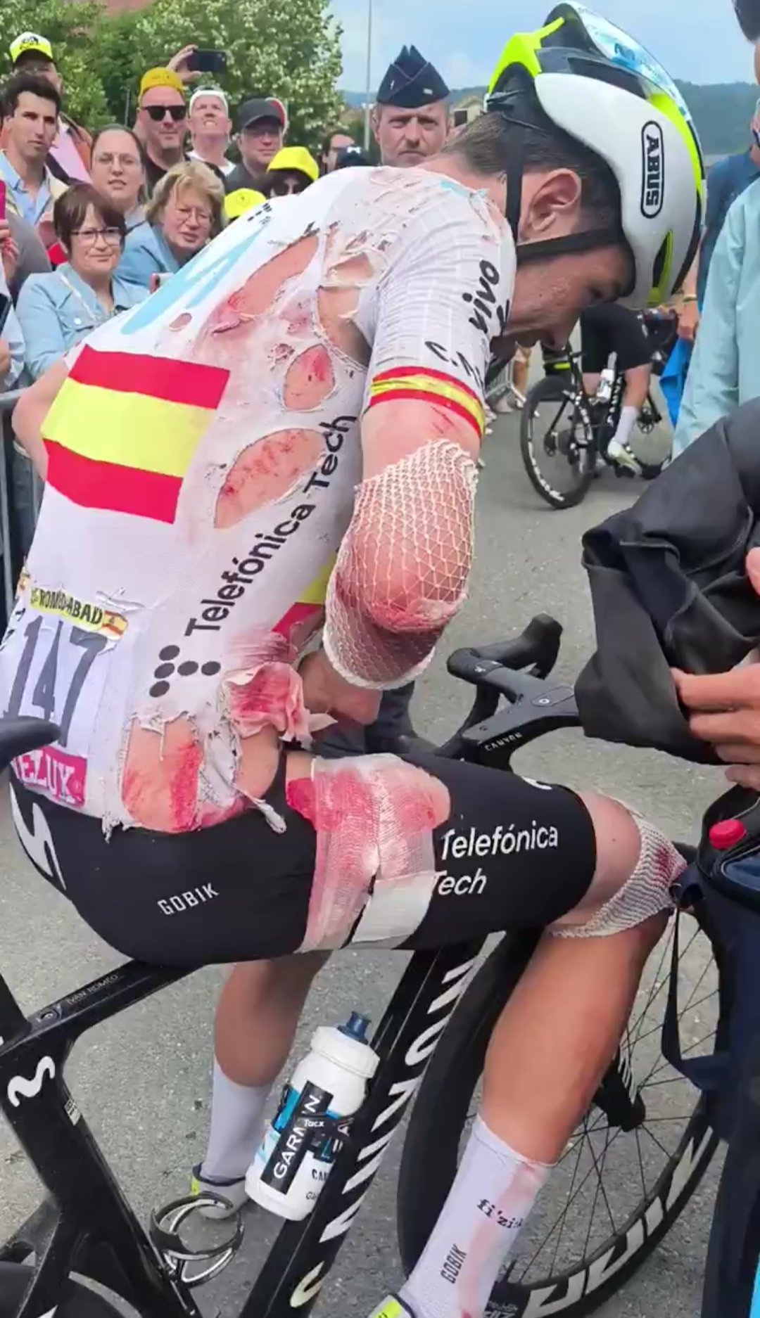 Pese a las heridas que tuvo producto de la caída, el ciclista consiguió continuó en la carrera tras recibir una nueva bicicleta.