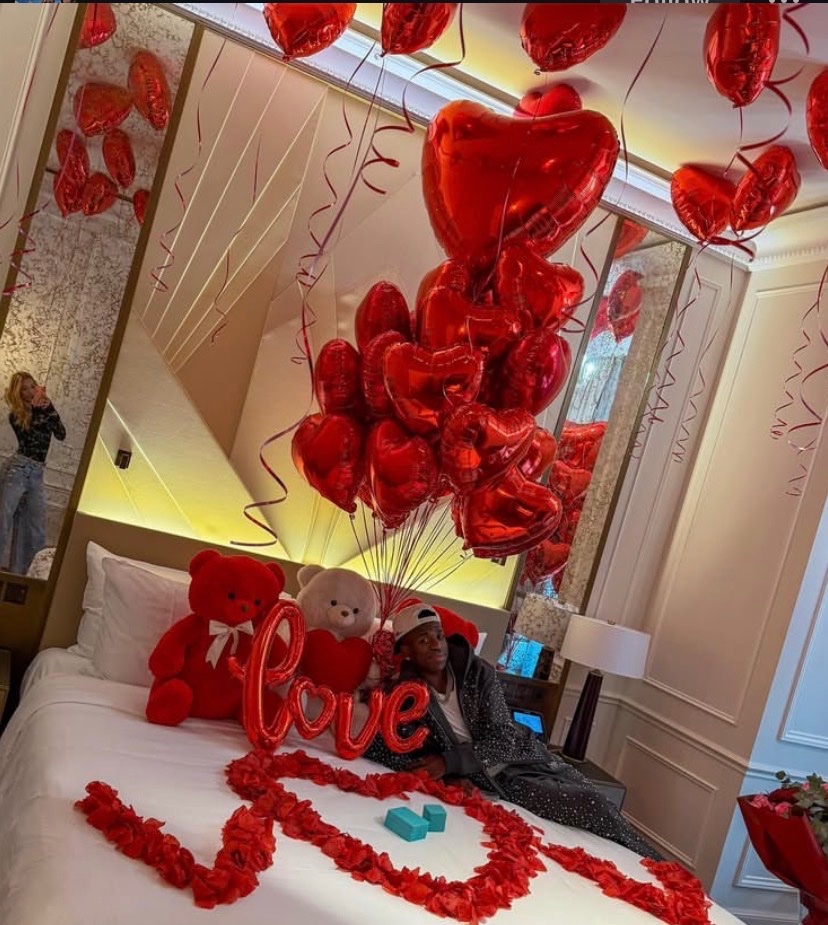 En las imágenes se puede ver a la pareja en una habitación del hotel, así como el gesto romántico que el futbolista del Real Madrid le preparó a la brasileña.