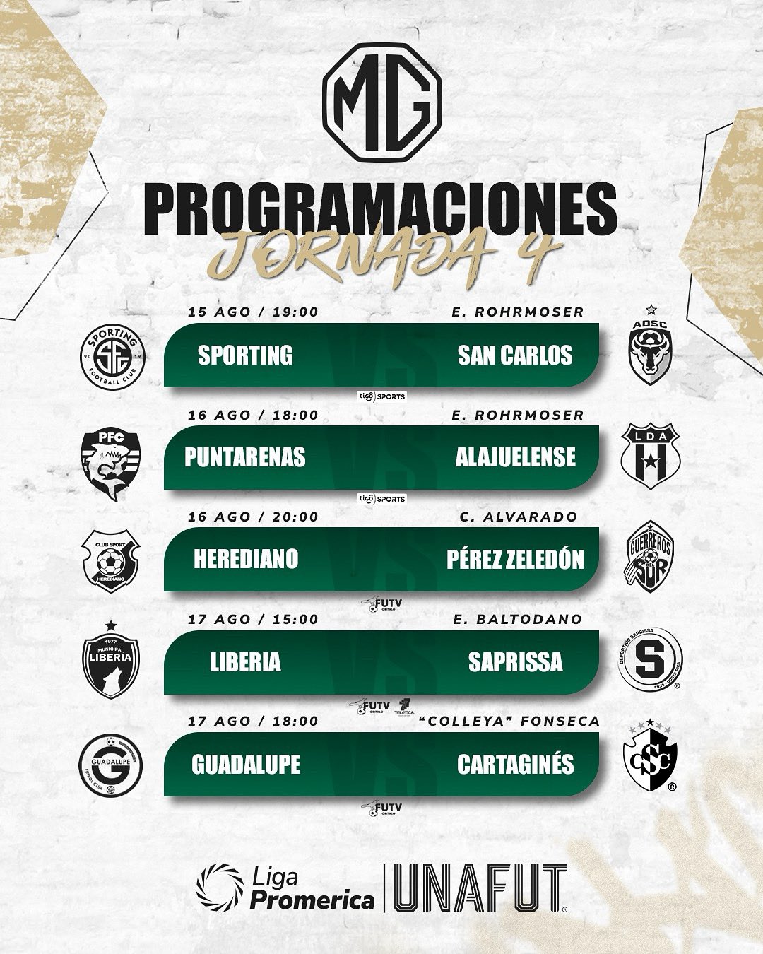 La jornada 4 del Torneo de Apertura 2025 estará aniñado el próximo viernes y finalizará el domingo en horas de la tarde-noche.