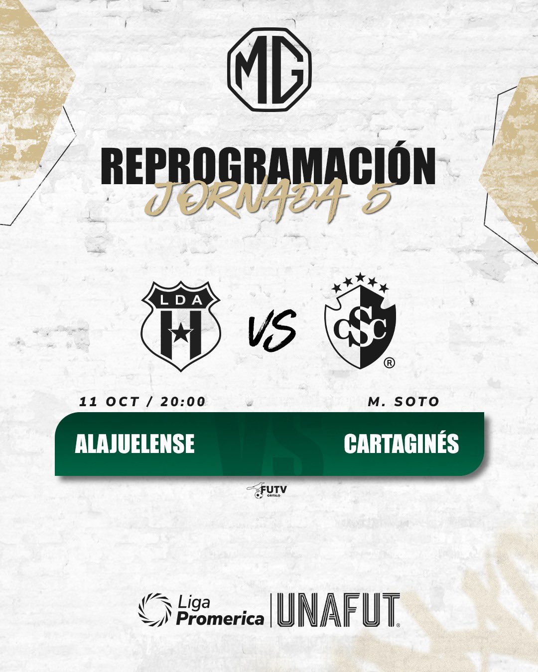 “UNAFUT comunica que hoy, 29 de agosto de 2025, el Comité de Competición recibió una nota de Liga Deportiva Alajuelense, mediante la cual solicita la modificación de la reprogramación del partido correspondiente a la Jornada 5 del torneo de Apertura 2025 de Liga Promerica ante el Club Sport Cartaginés. De esta manera, el Comité, en sesión extraordinaria, acordó la reprogramación del juego.