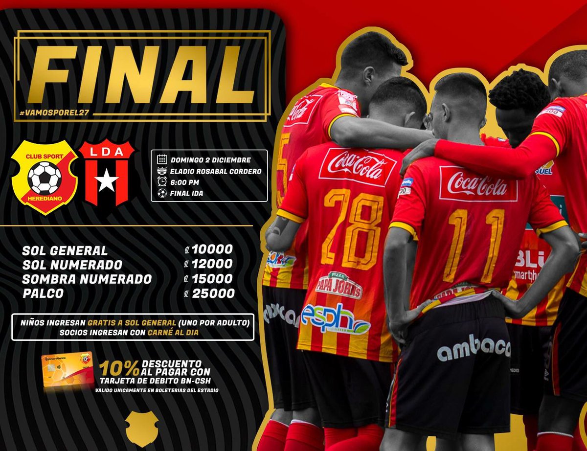 El partido está programado para las 6 pm. El precio de los boletos van del 10 mil a 25 mil colones. La vuelta se jugará el domingo 9 de diciembre en el Morera Soto a las 11 am.