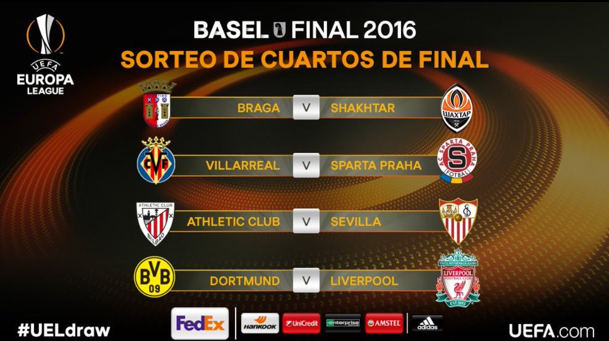 En la ciudad de Nyon, Suiza, se sorteó el emparejamiento de los cuartos de final de la UEFA Europa League.