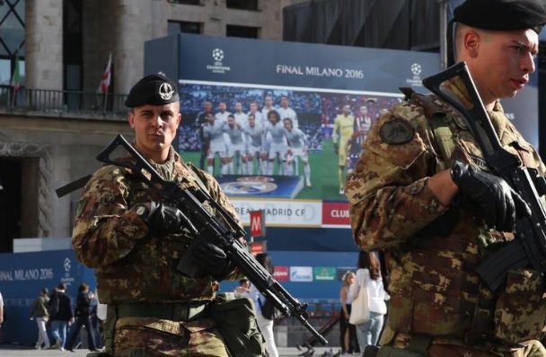Por el despliegue de 1.500 agentes policiales y militares. Por la decisión de colocar francotiradores en las torres del estadio de San Siro. Y por un estado de psicosis que ha extremado el nivel de alerta, sólo un grado inferior al que se aplica en el caso de una emergencia terrorista concreta y verificada.