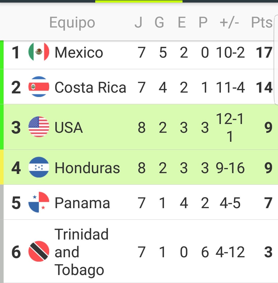 De hecho, Si Panamá vence a Trinidad y Tobago en el cierre de la fecha pasará al tercer lugar de la tabla y desplazará a los estadounidenses al cuarto lugar y a los 'catrachos' al quinto, donde estaban antes de esta doble jornada.