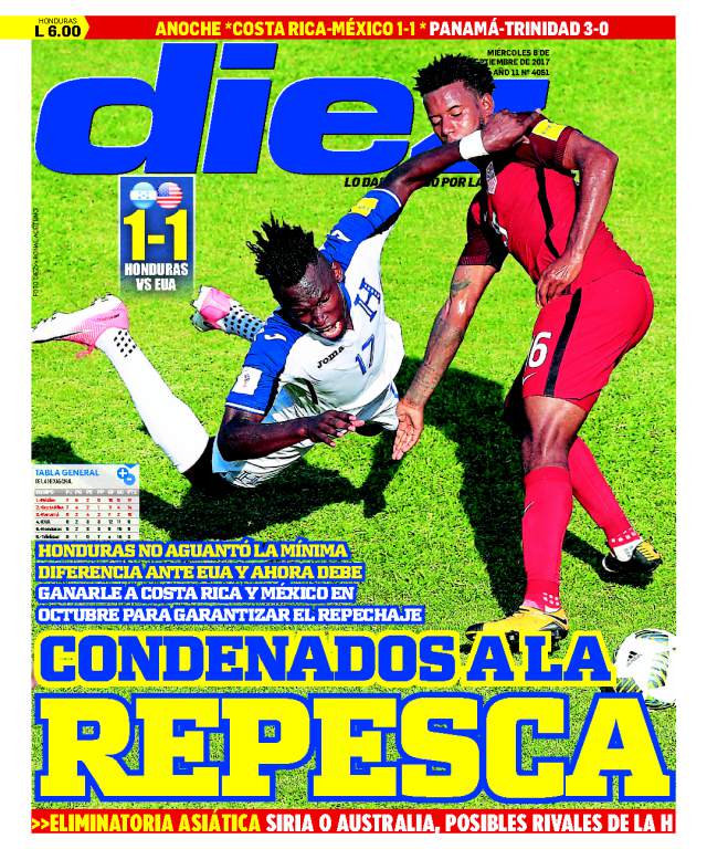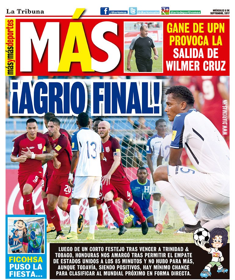 La selección de Honduras tenía una gran oportunidad para asumir el tercer lugar de la hexagonal final de la Concacaf, pero fallaron y terminaron empatando de local contra Estados Unidos. Los medios deportivos catrachos consideran que perdonaron y ahora están obligados a sacar la tarea en Costa Rica y en la última jornada en casa contra México.