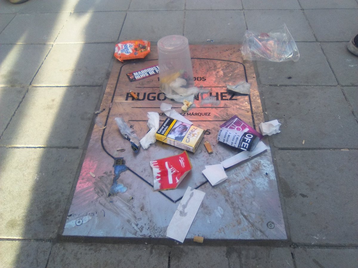En un intento de borrar su nombre o taparlo, los aficionados que han acudido desde bien temprano al Wanda Metropolitano han arrojado todo tipo de objetos encima de la placa del jugador mexicano.