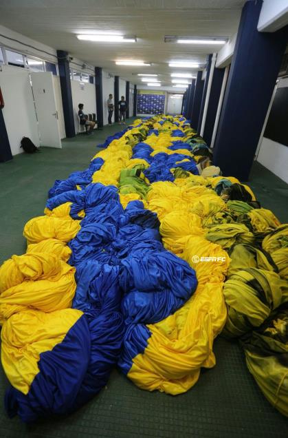 Según Clarín, "Los Guerreros" trabajaron un mes en su elaboración y en algunas jornadas estuvieron alrededor de 16 horas por día afinando los detalles del lienzo gigante.