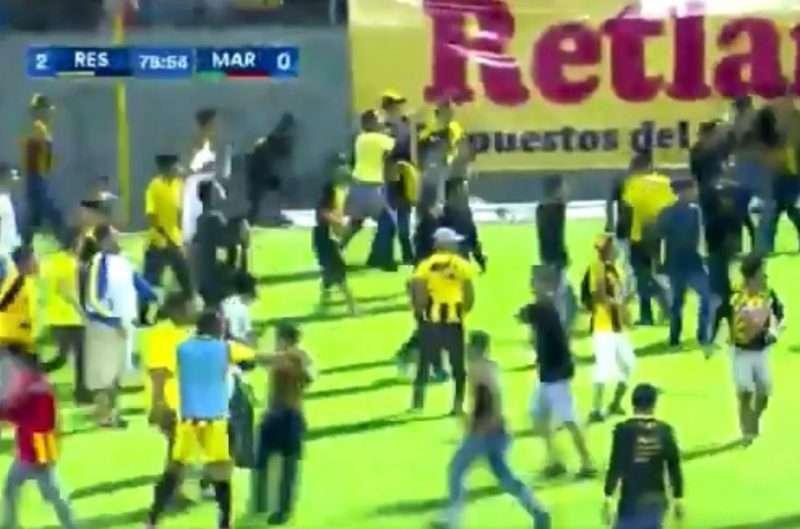 El árbitro del partido, Armando Castro, no pudo llevar la pelota al punto de penalti después de que los jugadores del Marathón se le echaran encima, en tanto que los aficionados se afanaban en abrir el portón para acceder al terreno de juego.