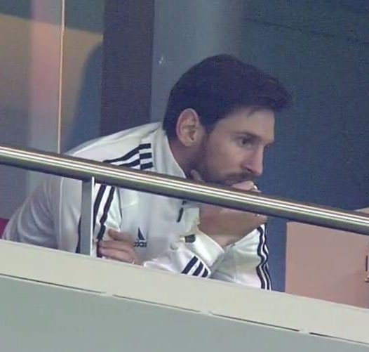 La cara de Messi en uno de los palcos del Estadio Wanda Metropolitano lo dice todo