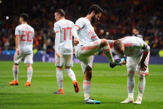 ESPAÑA: De Gea; Carvajal, Ramos, Piqué (Azpilicueta, min.73), Alba (Marcos Alonso, min.79); Thiago (Parejo, min.82); Koke; Iniesta (Saúl, min.56), Isco (Lucas Vázquez, min.76), Asensio y Diego Costa (Aspas, min.46).