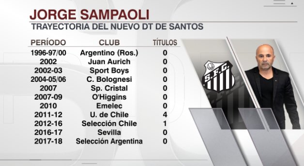 Jorge Sampaoli volverá a dirigir en 2019 ya que hoy fue confirmado como nuevo entrenador del Santos de Brasil a cambio un salario mensual de 250 mil dólares, número que lo convertiría en el DT mejor pago de ese país. Ahí tendrá como uno de sus dirigidos al tico Bryan Ruiz.