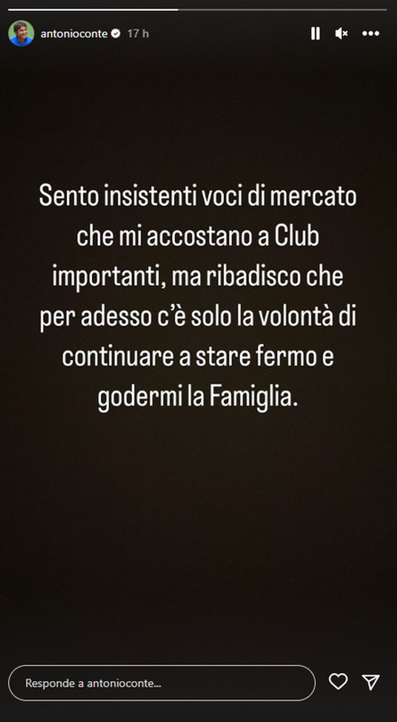 Lo hizo a través de una 'story' de su cuenta de Instagram. Escribió: "Escucho rumores insistentes que me vinculan a clubes importantes, pero reitero que, de momento, solo tengo la voluntad de seguir estando parado y disfrutar de mi familia". Aunque no lo mencionara directamente, se refería al Napoli, desde donde Aurelio de Laurentiis, presidente, había estado tratando de contactar con él.