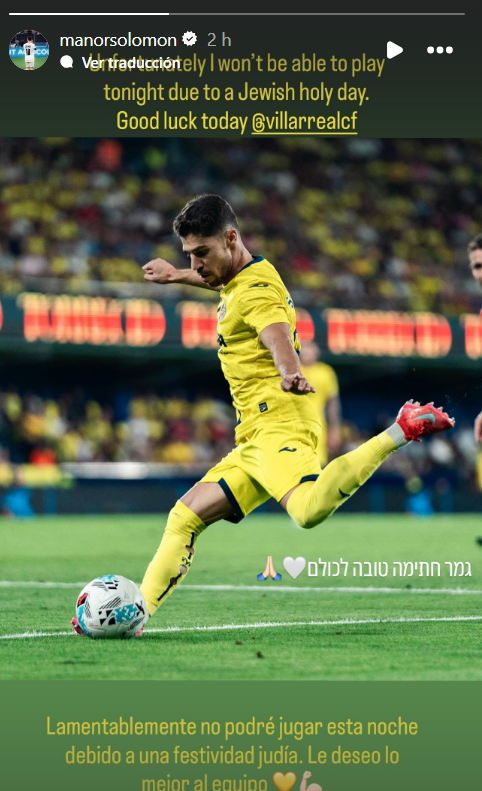 Manor Solomon, delantero israelí, se perderá el juego por un motivo religioso: la celebración de Yom Kipur, Día de la Expiación, el día más solemne del calendario judío.