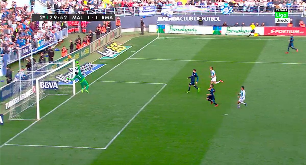En la segunda parte, el Real Madrid bajó algo los brazos y el Málaga se aprovechó de ello. Keylor hizo muy bien su trabajo, pero en el gol de Albentosa no pudo hacer nada.