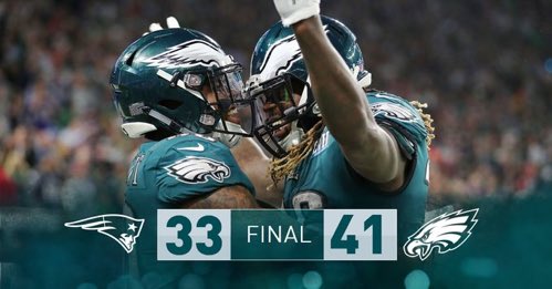Philadephia se quedó con el título de la NFL al imponerse a los campeones vigentes, New England Patriots, por 41-33. El mariscal de campo Nick Foles se convirtió en el héroe inesperado para su equipo al conseguir dos touchdown y anotar uno como receptor.