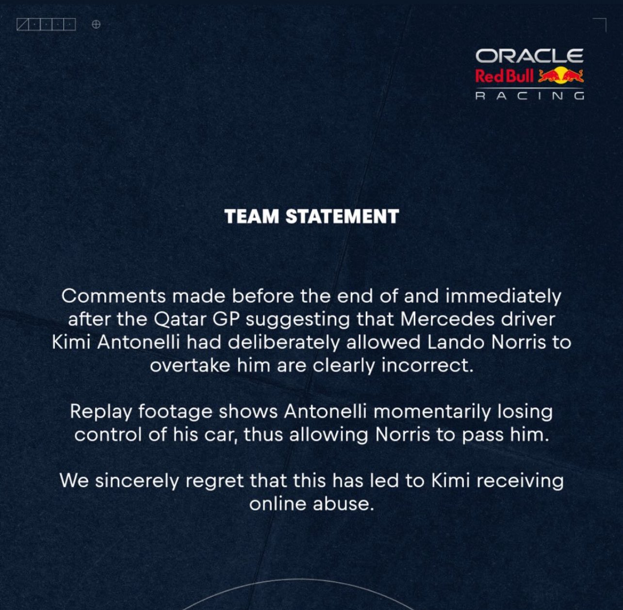 La maniobra desató la indignación de una parte de la afición que pensó que Antonelli se había dejado pasar para favorecer a Norris, quien lucha con Verstappen y Piastri por el campeonato.