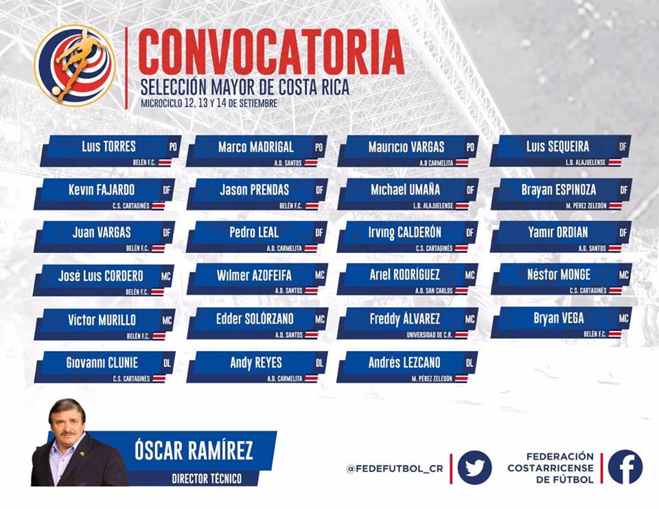 Después de cerrar la cuadrangular de manera invicta y en el primer lugar del grupo B, la Selección de Costa Rica al mando del entrenador, Óscar Ramírez, dio la lista de 23 jugadores del ámbito nacional que trabajarán en el tercer microciclo a partir de este lunes.