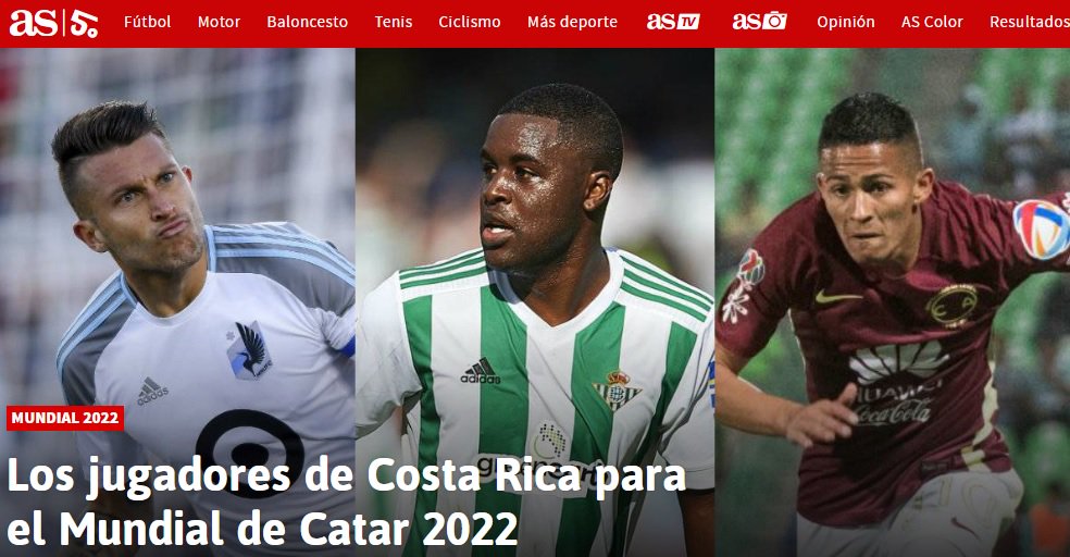 El Diario AS de España le dedicó una nota a la selección de Costa Rica, equipo que se despidió del Mundial de Rusia en la primera fase y ahora se alista para un cambio generacional de cara a Catar 2022.