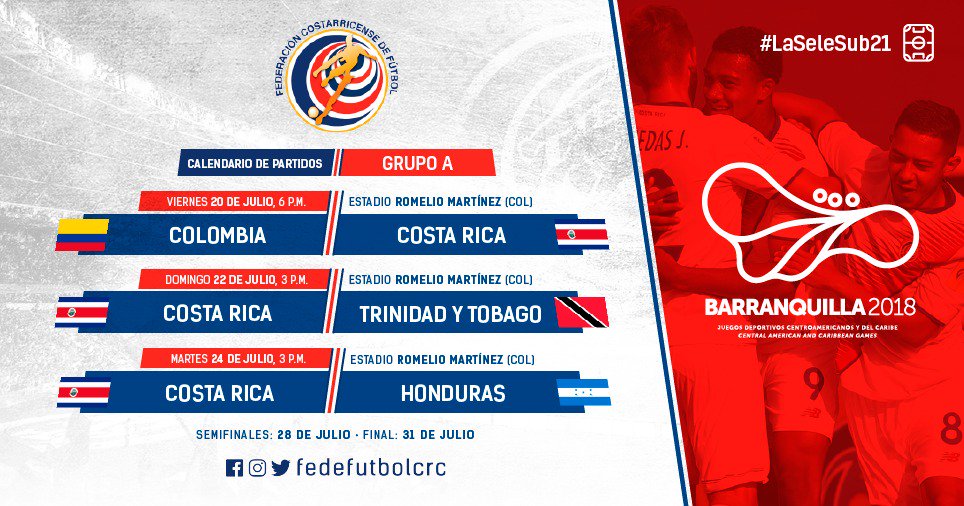 Las selecciones de Costa Rica que participarán en los Juegos de Barranquilla 2018, tienen establecidos los juegos para la competición.